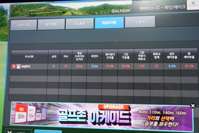 7번 아이언 시타 시 약 165m 정도의 비거리를 보내주는 것을 확인할 수 있다.