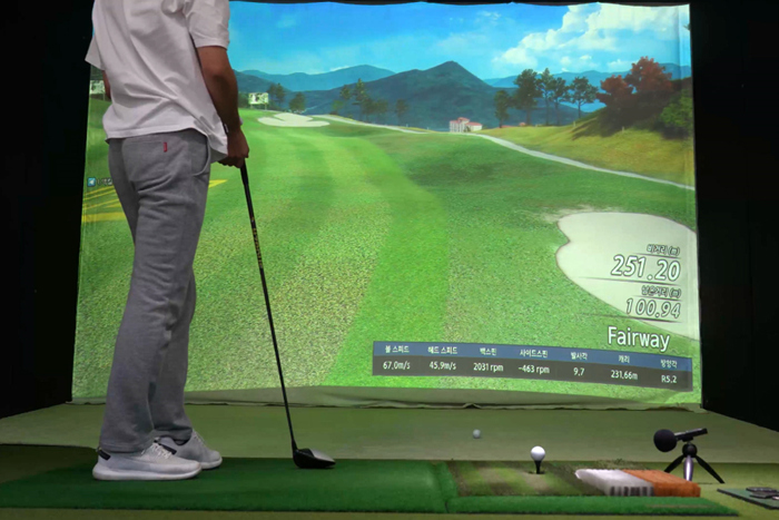 스크린 골프를 플레이하며 PXG 0311T GEN5 아이언을 사용해보았다. 헤드가 초보자용 제품들에 비해서는 약간 작은편이지만, 머슬백 모델들에 비해서는 부담스럽지 않다.